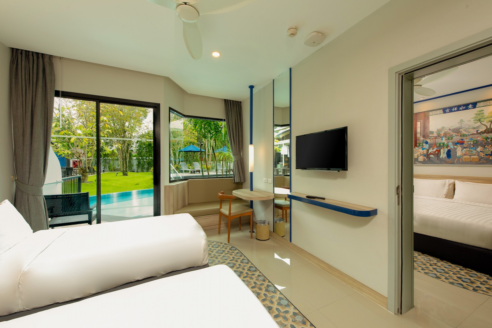Looking for an amazing family beach resort? We have your family covered with our Two-Bedroom Family Suites with Pool View. There is one king-size bed, two single beds, black-out curtains, two sofas and two bathrooms with separate access doors for kids and parents. Two-Bedroom Family Suites with Pool View offering 516 square feet (48 square meters) are very popular for families, combining the elements of practicality, space and fun. The King Bedroom can be made private with a door while the kids are comfy in the twin beds with a private room.
